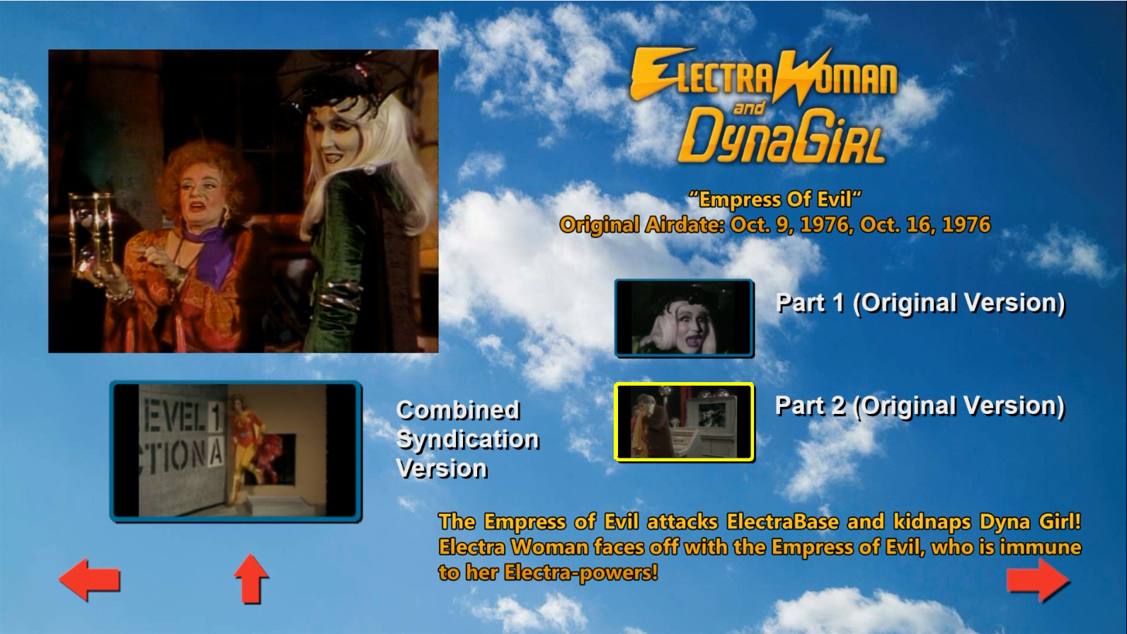 This is a special fan-made release of ElectraWoman & DynaGirl on a single Blu Ray disc. What we have here are 2 different versions of each episode. First are the original 2-part versions as shown on The Krofft Supershow in 1976, complete with teasers and bumpers, taken from recent uncut California airings. Next we have the syndicated versions which were released in Australia in a now out of print DVD set. The syndicated versions have combined the two parts into full length episodes, and have different edits as well as missing scenes. You will be able to choose which versions you want to watch. After it's over, it will start on the next episode. Everything is included in this set, in very nice quality. Please note this Blu Ray disc will not play on an X-Box. It will play on a regular Blu Ray player, as well as PS4.