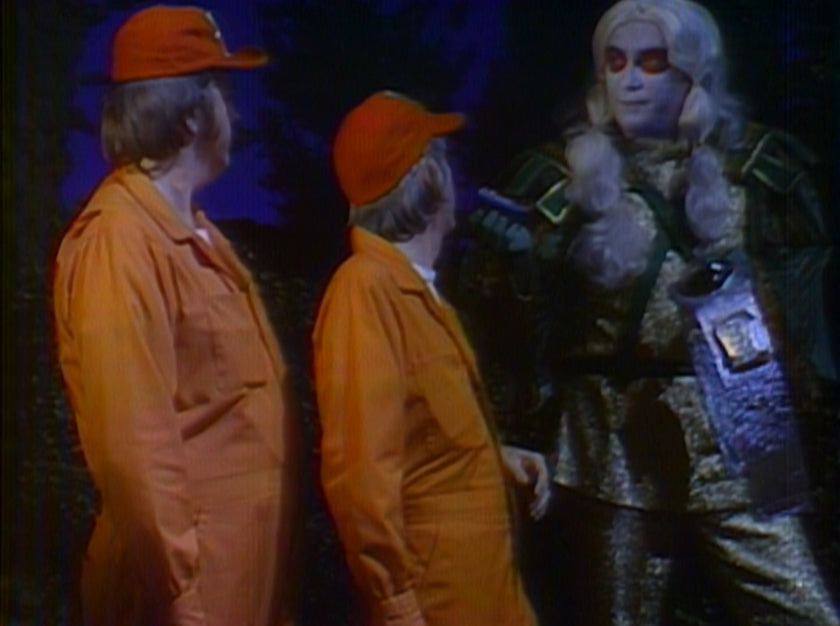 Typically, in each episode, their spaceship (a NASA lunar module) would be captured by aliens (one being played by John Caradine, who so impressed Denver with his acting skills during a scene that he was left speechless and missed his cue, requiring another take) and taken to some strange planet, or the spaceship would merely land somewhere. Then, either Barney and Junior, or the ship, would be taken away by the strange creatures on the planet. After some weird mission was carried out, the two astronauts would be reunited with the spaceship and be off on their next mission.