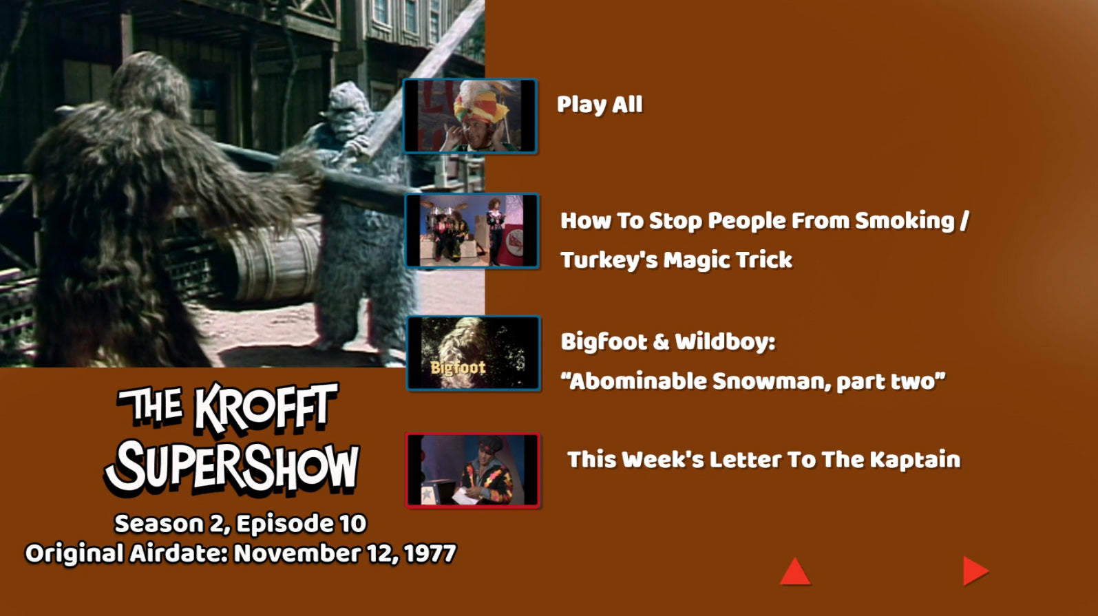 Here it is! The complete Krofft Supershow series from 1976-1978 on 5 Blu Ray discs. This show was hosted by Kaptain Kool and The Kongs from the World of Sid & Marty Krofft in Atlanta. This is both seasons in beautiful quality. Season 1 features the shows: "Wonderbug", "Dr. Shrinker", "Electra Woman and Dyna Girl" plus 2 episodes of "The Lost Saucer". Season 2 features "Bigfoot and Wildboy", "Wonderbug", and "Magic Mongo" This does not include the Krofft Superstar Hour which some consider its third season.