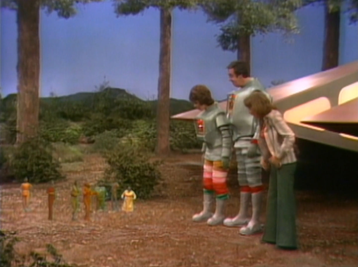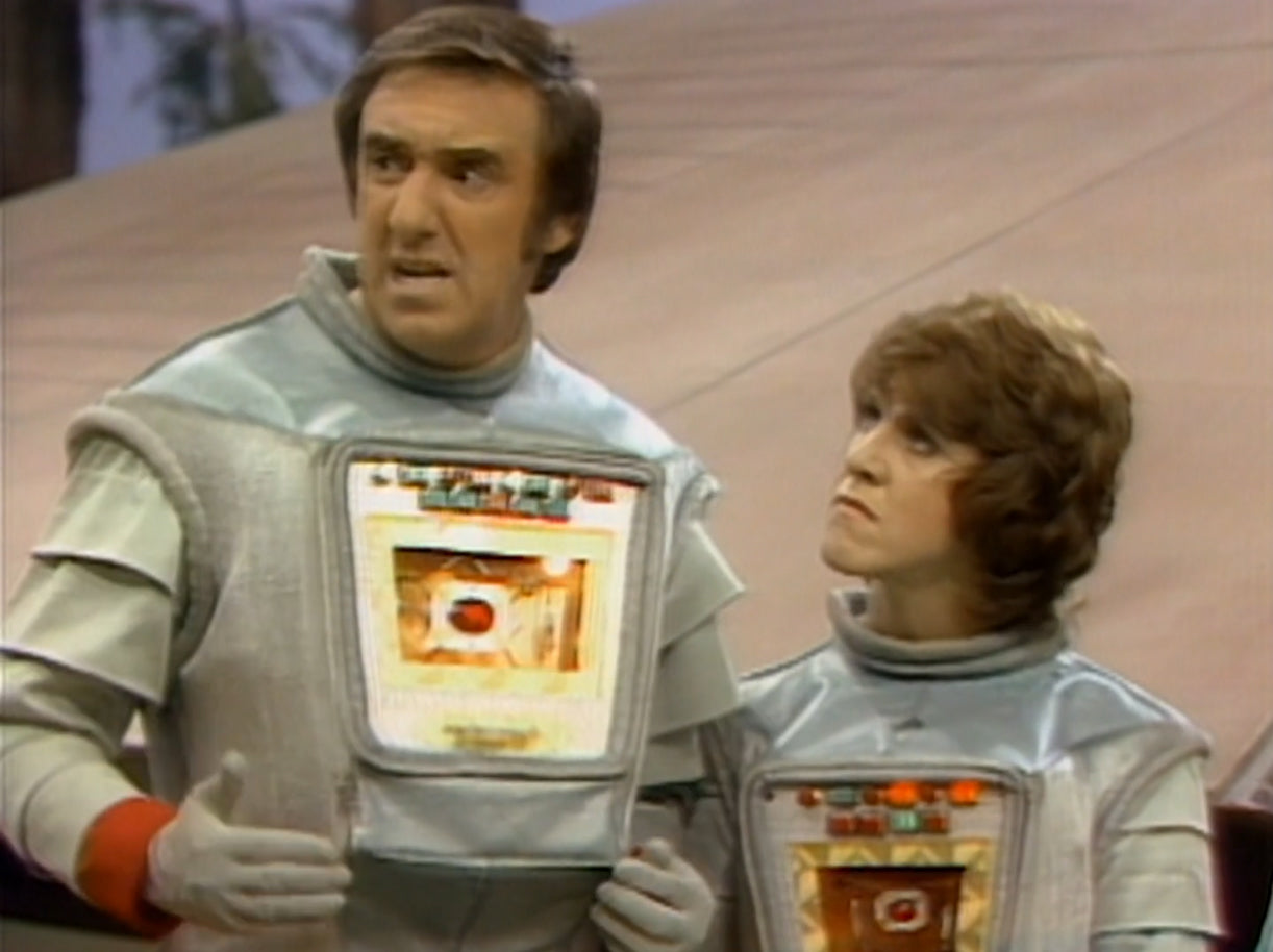 The Lost Saucer was about two friendly time-travelling androids from the year 2369 named Fi (Ruth Buzzi) and Fum (Jim Nabors) who land their flying saucer on present-day (1975) Earth. They good-naturedly invite a young boy named Jerry (Jarrod Johnson) and his babysitter Alice (Alice Playten) to check out the interior of their craft.