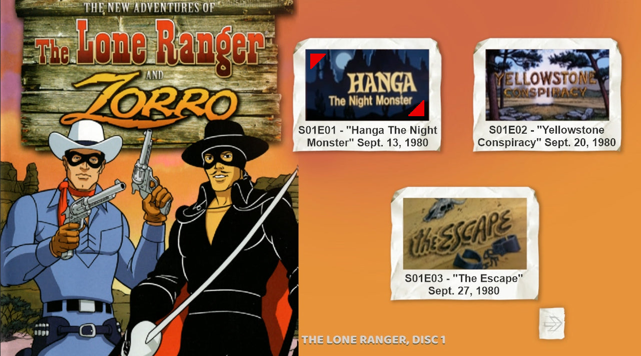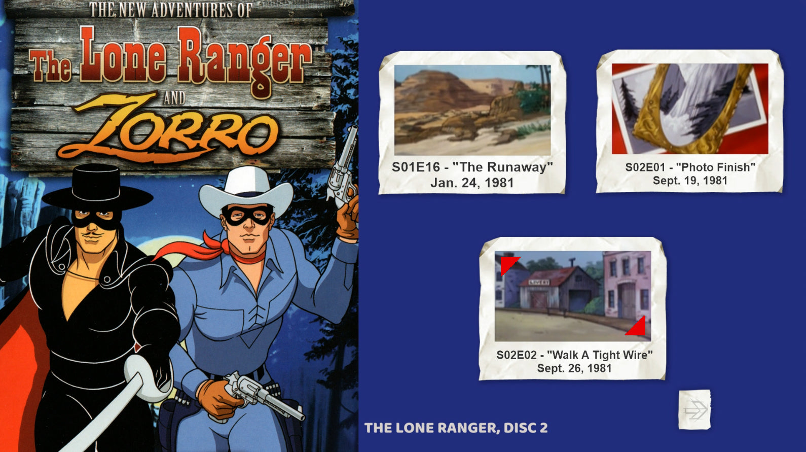 This is the complete collection of "New Adventures of The Lone Ranger and Zorro" by Filmation, originally aired on Saturday mornings on CBS during the 1981-1982 season. The original DVD release has been long out of print. Originally released as two separate volumes, this set collects everything into one 3-disc collection. The episodes have been upscaled to 720p and look very nice. The bonus interviews are also included. Complete: all 28 episodes of Lone Ranger and all 13 episodes of Zorro. Please note that this set will play on any Blu Ray player or PS3/4/5, but will not play correctly on Xbox.