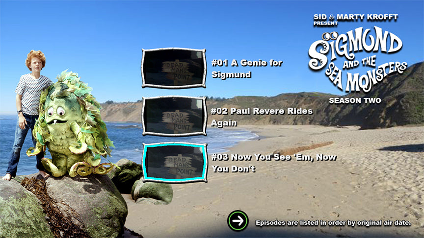 This is a 2-disc, fan-produced collection of the entire "Sigmund and the Sea Monsters" series. The quality is the same as the out of print DVD releases, and includes commentary tracks and interviews, as well as interactive menus and color artwork. Season one was released in the US and the complete series was released in Australia. Now they are both out of print and being sold for hundreds of dollars.