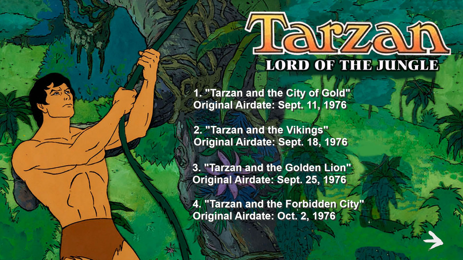 Tarzan, Lord of the Jungle is an animated series created by the Filmation studio for Saturday mornings on CBS, starting in 1976. This was the first animated series about the jungle hero. There are a total of 36 episodes produced over four seasons.